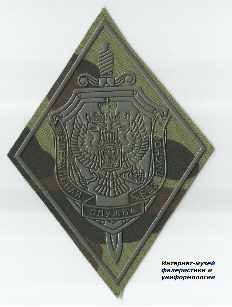 Для полевой формы одежды изготавливались знаки камуфлированной расцветки с одноцветным рисунком черного или серого цвета. Приказом ФСБ России от 31.03.2008 года № 130 "О военной форме одежды военнослужащих органов Федеральной службы безопасности" была введена новая униформа иссиня-черного цвета.