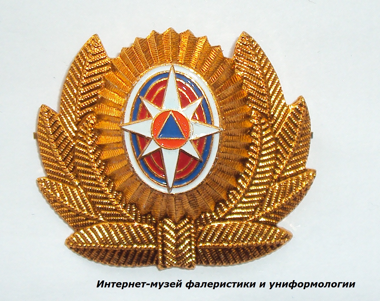 Новинка музея - кокарда в обрамлении золотистого цвета для фуражек, шапок-ушанок, беретов (кроме рядового и младшего начальствующего состава) сотрудников МЧС России образца 2017 года.
