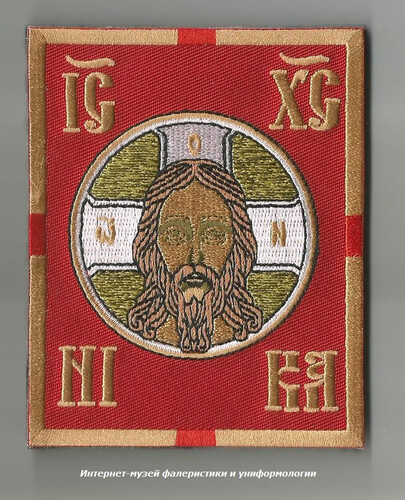 Представляет собой тканевую нашивку в форме прямоугольника с изображением русской военной хоругви.