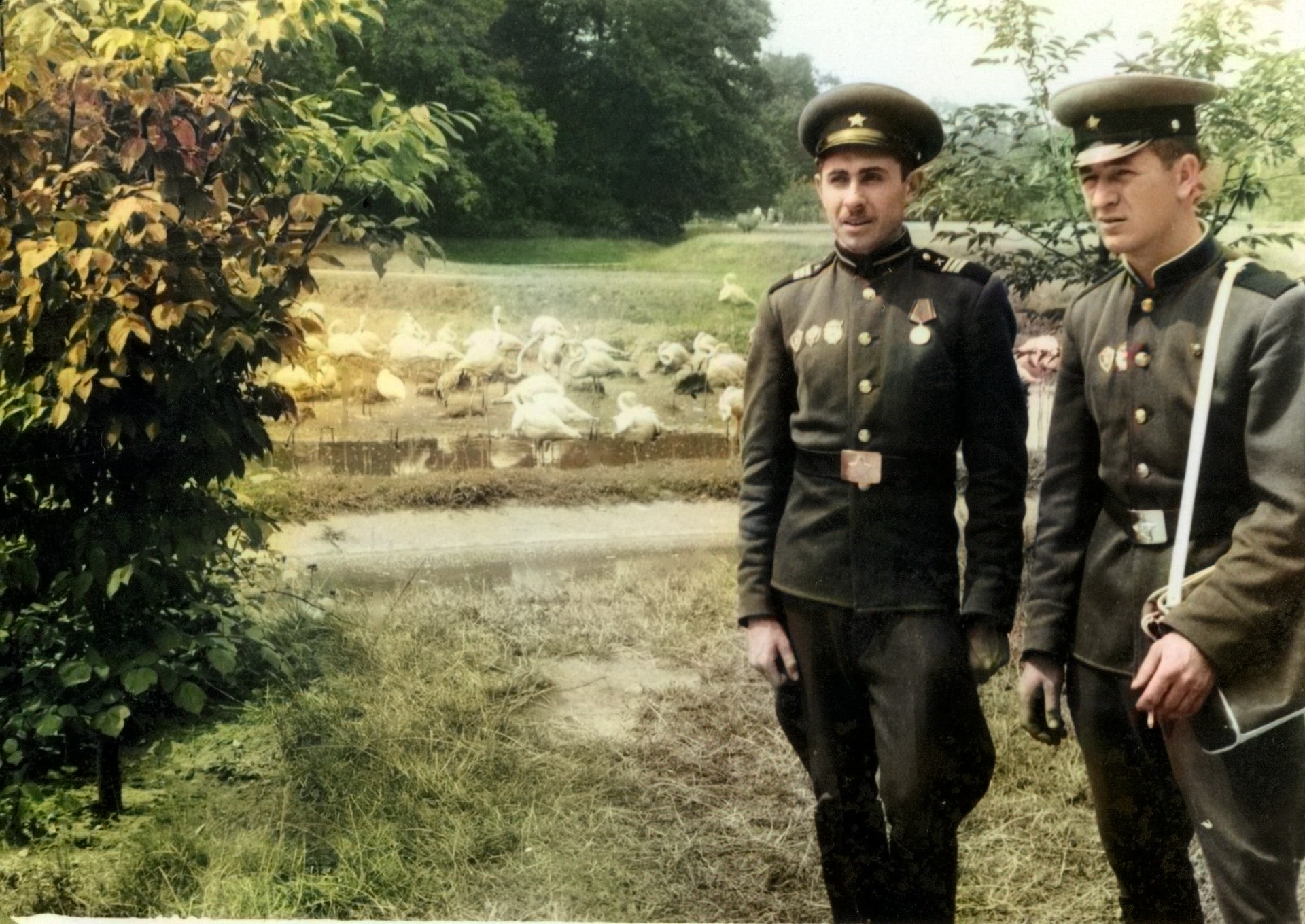 На берегу канала. На этом и последующих снимках мы можем видеть примеры ношения повседневно-полевой формы одежды образца 1956 года.