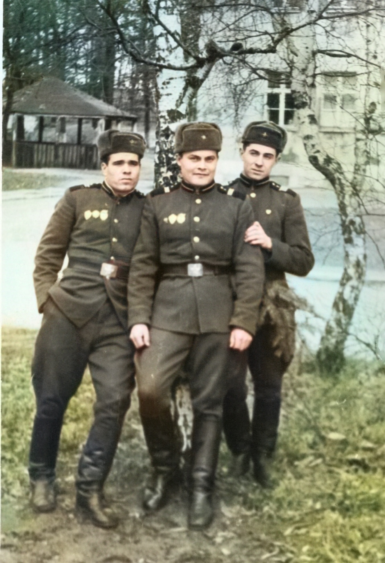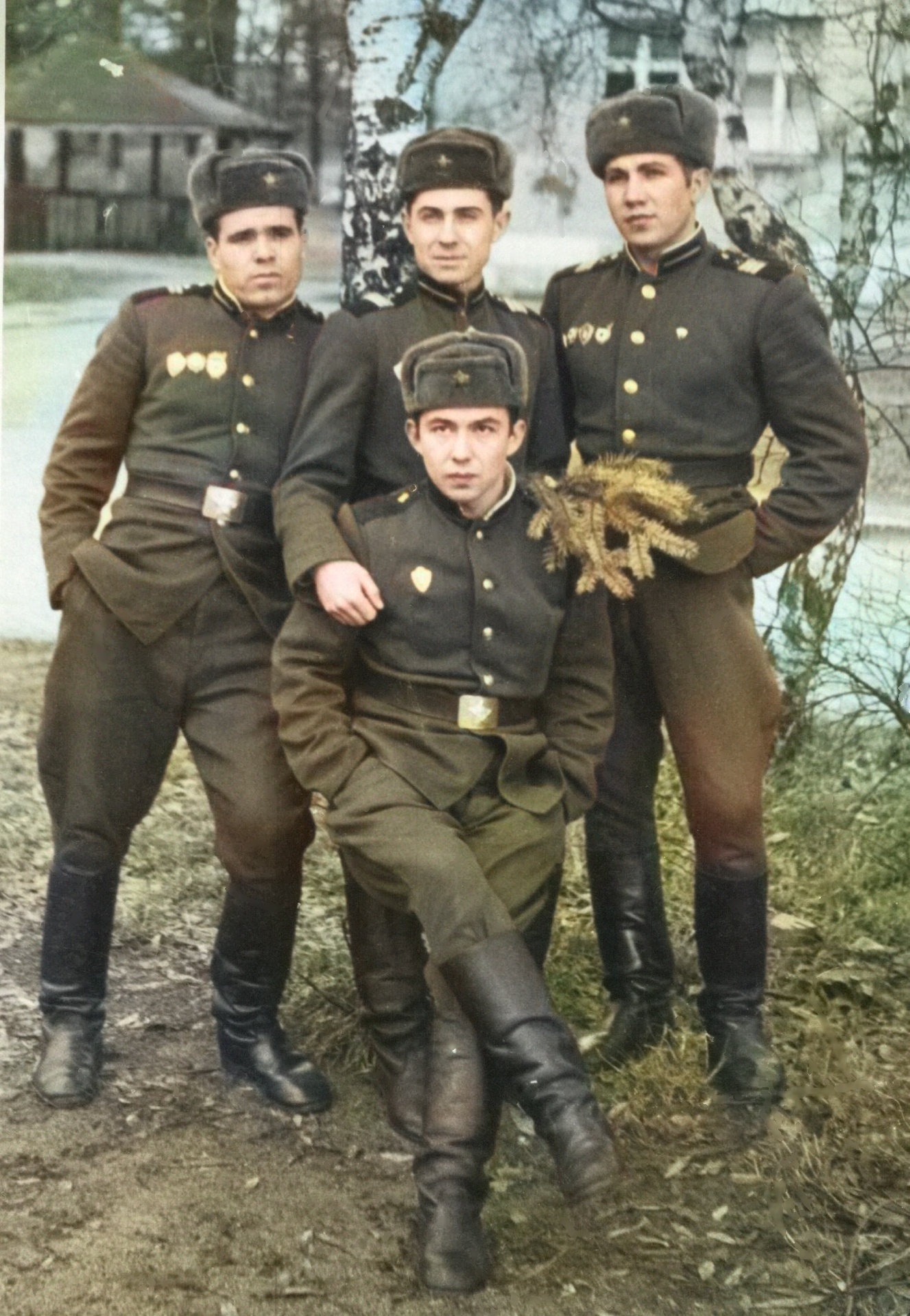 С однополчанами.