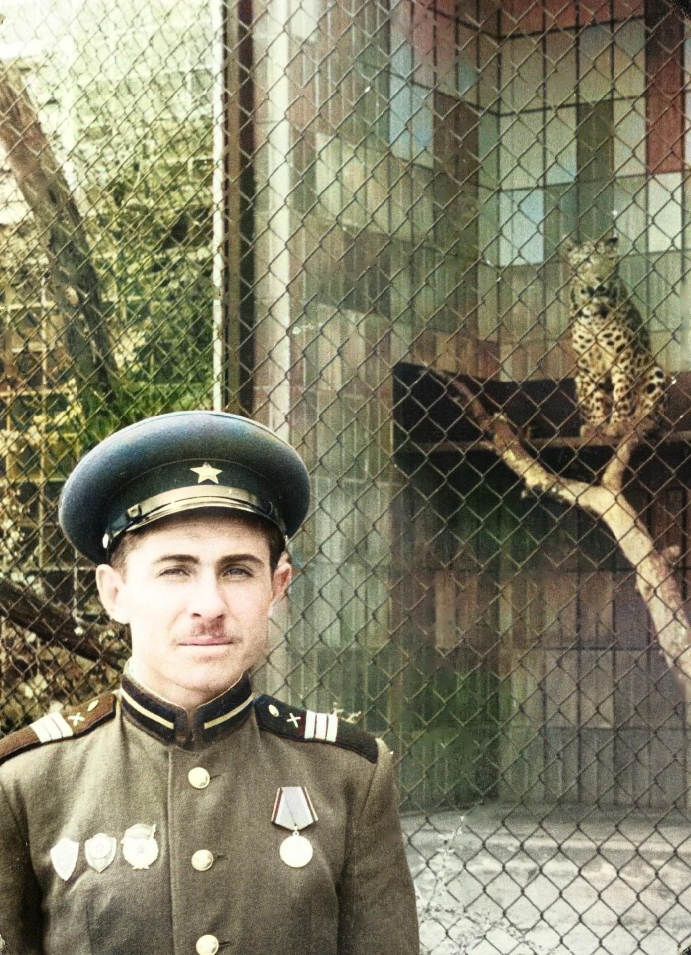 В зоопарке. Помимо нагрудных знаков, перечисленных выше, на мундире видна медаль «Двадцать лет Победы в Великой Отечественной войне 1941—1945 гг.».