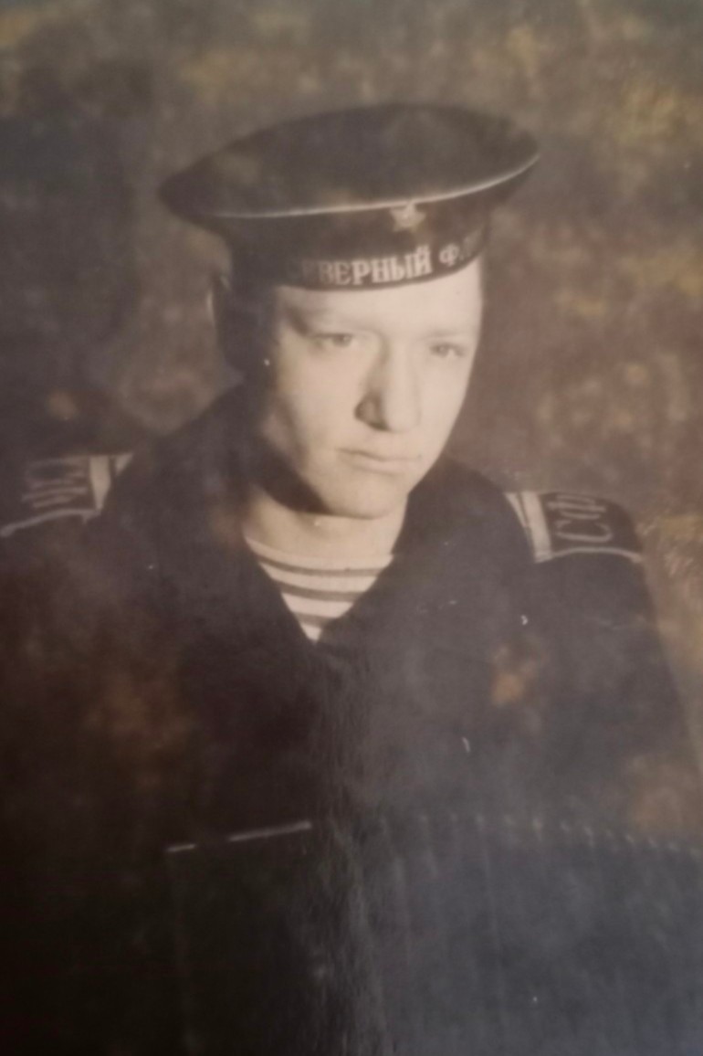 На первом снимке Алексей Андреевич запечатлён в звании старшины 2 статьи. Лента бескозырки с надписью «СЕВЕРНЫЙ ФЛОТ», погоны на бушлате с шифровками «СФ». В описываемый период буквы наносились на погоны краской по трафарету.