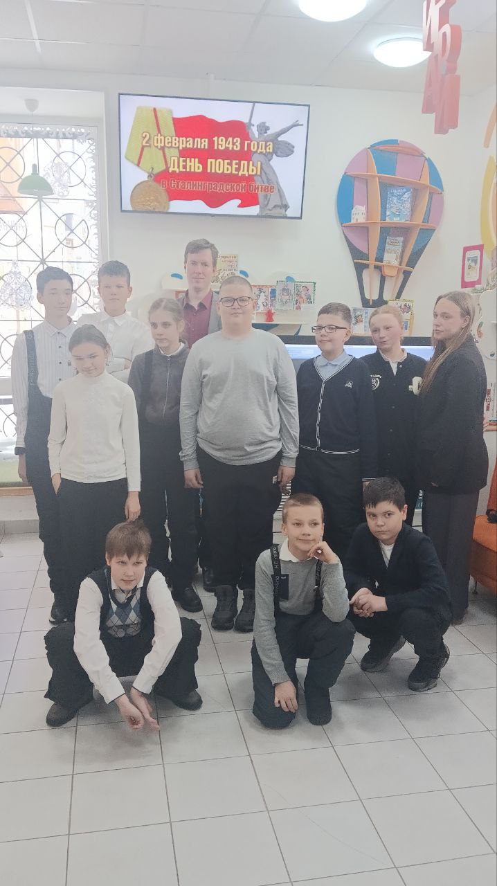 2 февраля в России отмечается День разгрома немецко-фашистских войск под Сталинградом. В этот день я провел мероприятие в томской муниципальной библиотеке «Сказка» для учеников школы № 50.